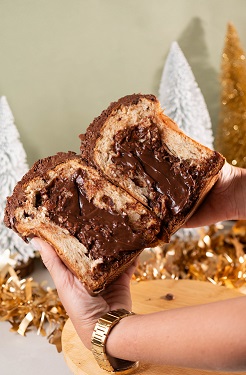 Nosso Chocotone Nutella crocante é feito com massa macia e leve com o recheio de ganache de nutella com a nutella crocante que está conquistando o Brasil.