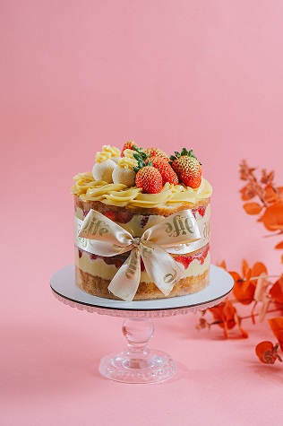 Massa branca bem molhadinha com recheio de brigadeiro de ninho e morangos ( a fruta fresca)