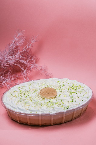 Base crocante de biscoito, mousse de limão creme suave de Ninho e cobertura de chantininho finalizada com raspas de limão.
