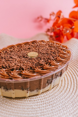 Massa de chocolate molhadinha com mousse de chocolate e ninho cremoso.