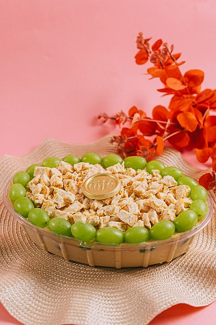 Cremosa, crocante e surpreendente! Nossa torta na travessa combina Ninho cremoso, uvas verdes sem caroço e sucrilhos caramelizados com chocolate branco — simplesmente viciante